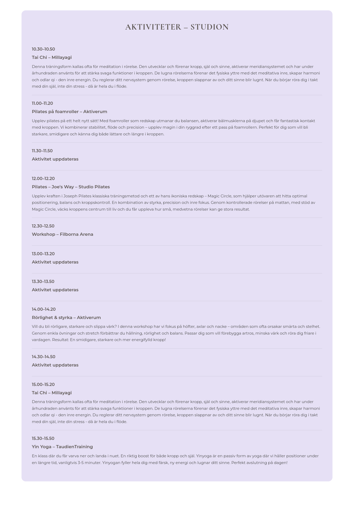 Tränings- och Yogaupplevelser